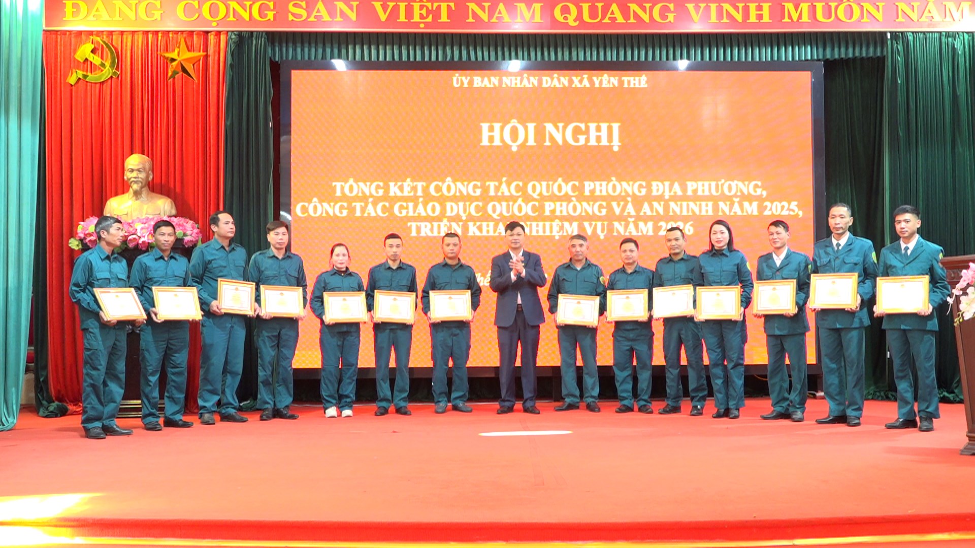 Nhân dịp này Chủ tịch UBND xã đã khen thưởng cho 10 tập thể và 15 cá nhân đã có thành tích xuất sắc trong công tác quốc phòng địa phương năm 2025./.