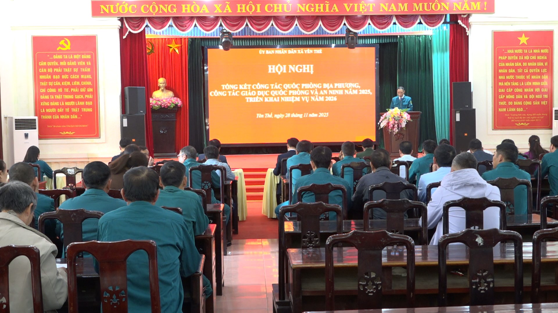 Chiều ngày 28/11, UBND xã Yên Thế đã tổ chức Hội nghị tổng kết công tác quốc phòng địa phương, công tác giáo dục quốc phòng và an ninh năm 2025; triển khai nhiệm vụ năm 2026. Dự hội nghị có đồng chí Thượng tá Nguyễn Minh Đức – Phó Chỉ huy trưởng, Ban Chỉ huy Phòng thủ khu vực 3. Ở xã có đồng chí Nguyễn Tiến Hà – Phó Bí thư Thường trực Đảng ủy; đồng chí Phan Tùng Dương – Phó Bí thư Đảng ủy, Chủ tịch UBND xã.