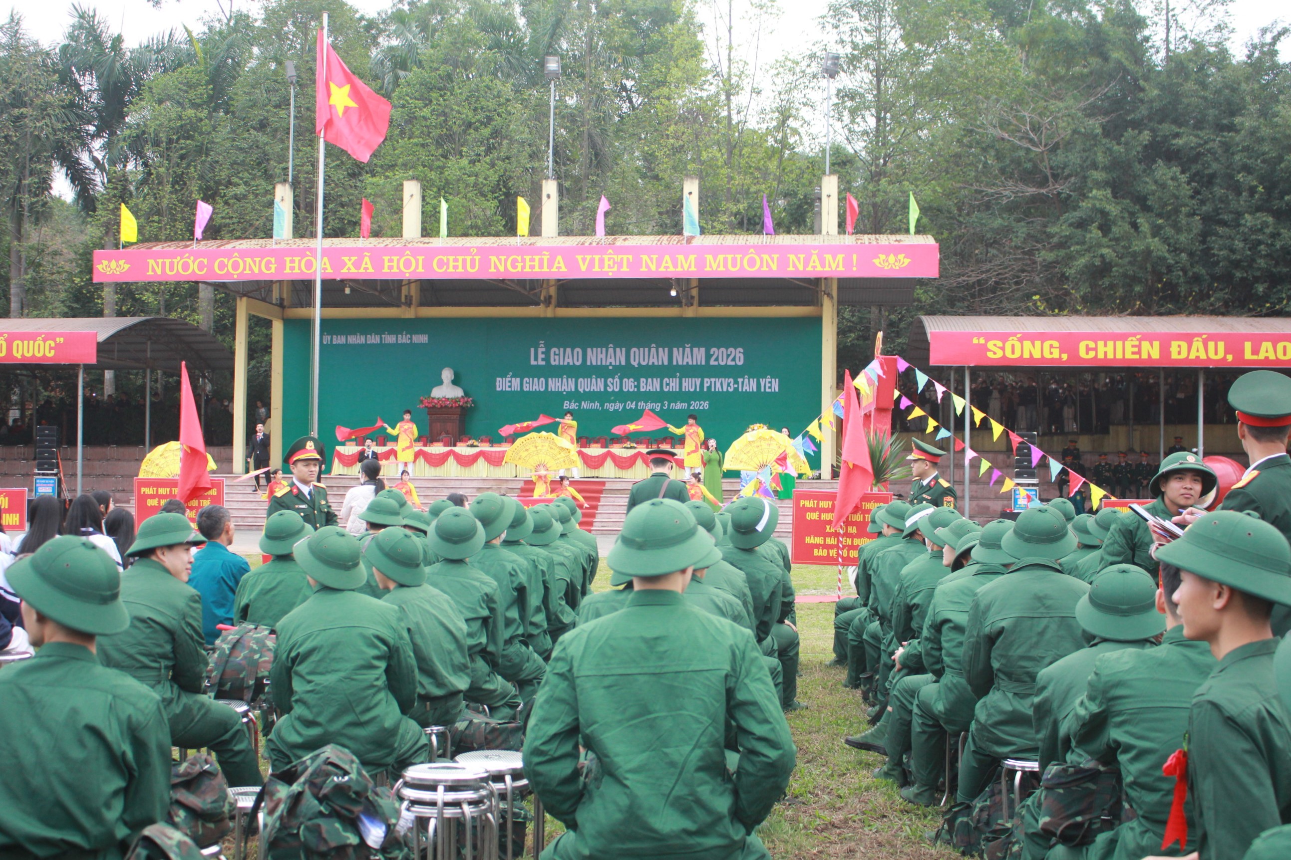 Sáng ngày 04/3, tại Sân vận động xã Tân Yên, Hội đồng Nghĩa vụ quân sự tỉnh Bắc Ninh long trọng tổ chức Lễ giao nhận quân năm 2026 tại điểm giao nhận quân số 6 (Ban Chỉ huy Phòng thủ khu vực 3 – Tân Yên).
