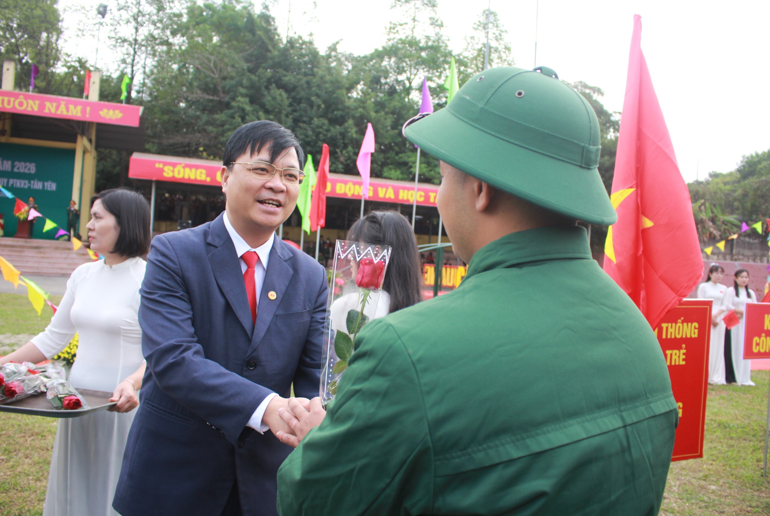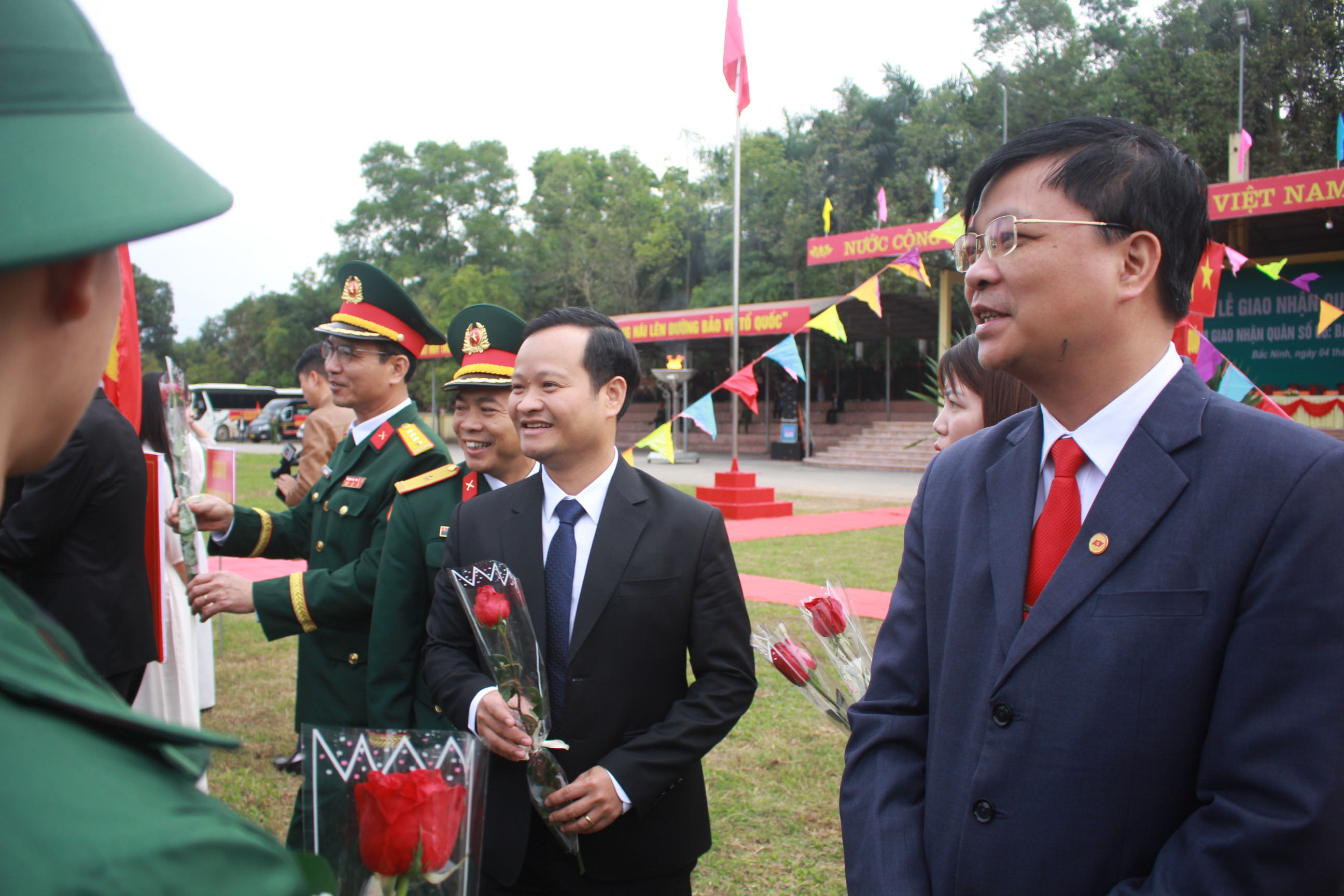 Dự buổi lễ có đồng chí Đào Quang Khải – Ủy viên Ban Thường vụ Tỉnh ủy, Phó Chủ tịch UBND tỉnh; đồng chí Trần Thị Vân – Tỉnh ủy viên, Phó Trưởng Đoàn chuyên trách Đoàn đại biểu Quốc hội tỉnh; cùng lãnh đạo các sở, ban, ngành của tỉnh; đại diện Bộ Chỉ huy Quân sự tỉnh, Công an tỉnh; lãnh đạo Ban Chỉ huy Phòng thủ khu vực 3 – Tân Yên; chỉ huy các đơn vị nhận quân; cấp ủy, chính quyền địa phương và đông đảo Nhân dân đến dự, động viên các tân binh lên đường làm nhiệm vụ bảo vệ Tổ quốc.