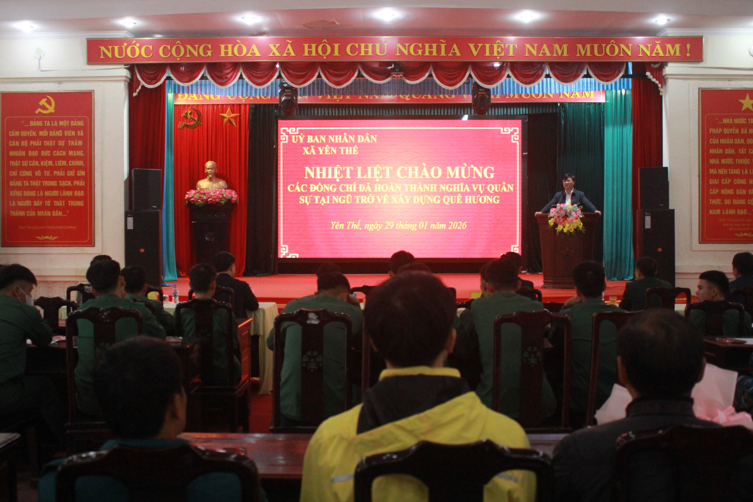 Sáng ngày 29/01, UBND xã Yên Thế long trọng tổ chức lễ đón nhận quân nhân hoàn thành nghĩa vụ quân sự tại ngũ trở về xây dựng quê hương. Dự hội nghị có đồng chí Nguyễn Tiến Hà – Phó Bí thư Thường trực Đảng ủy xã; đồng chí Phan Tùng Dương – Phó Bí thư Đảng ủy, Chủ tịch UBND xã, Chủ tịch Hội đồng NVQS xã; các đồng chí TT HĐND, UBND, UB MTTQ xã; lãnh đạo các cơ quan, đơn vị thuộc UBND xã, Công an xã, Ban CHQS xã.