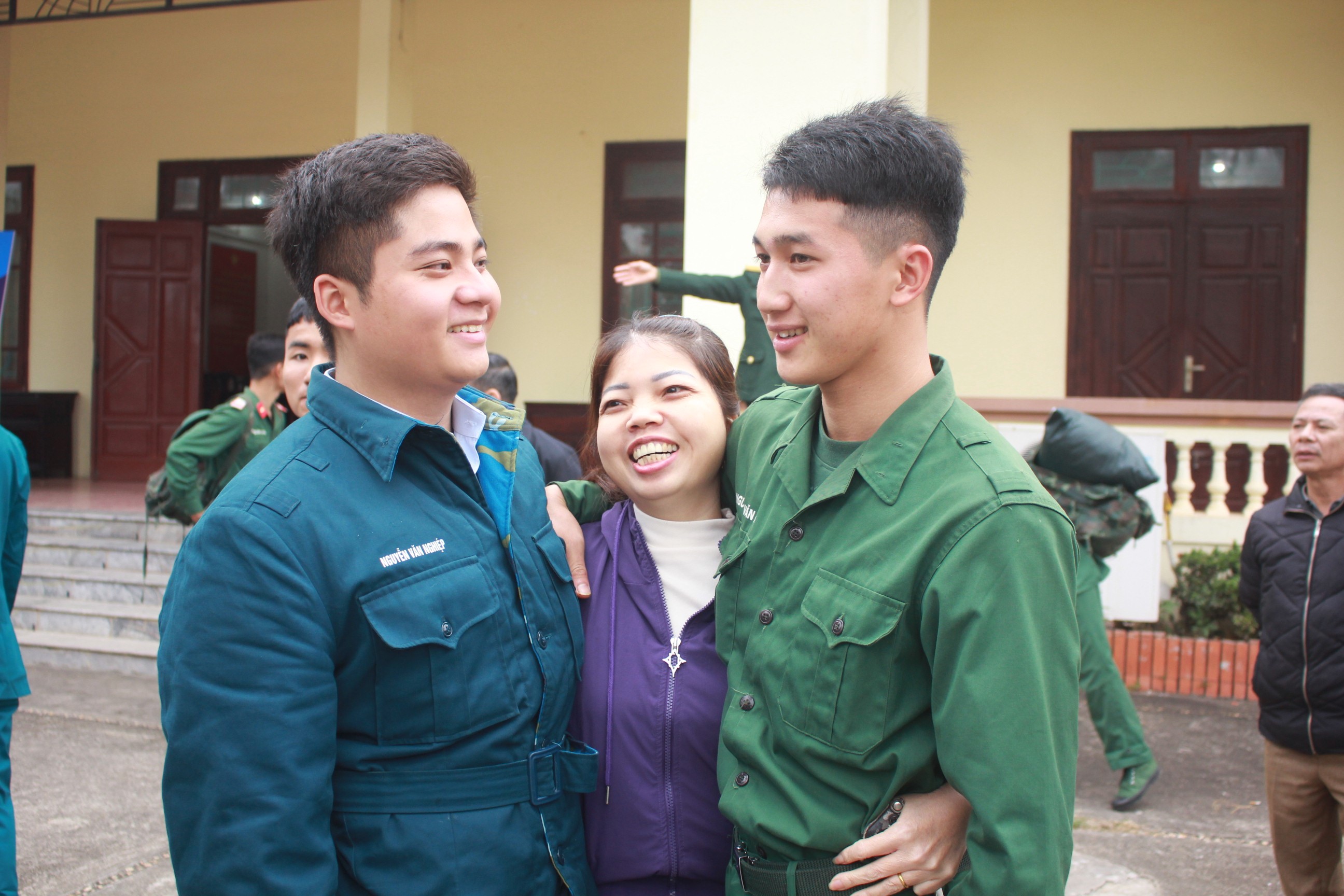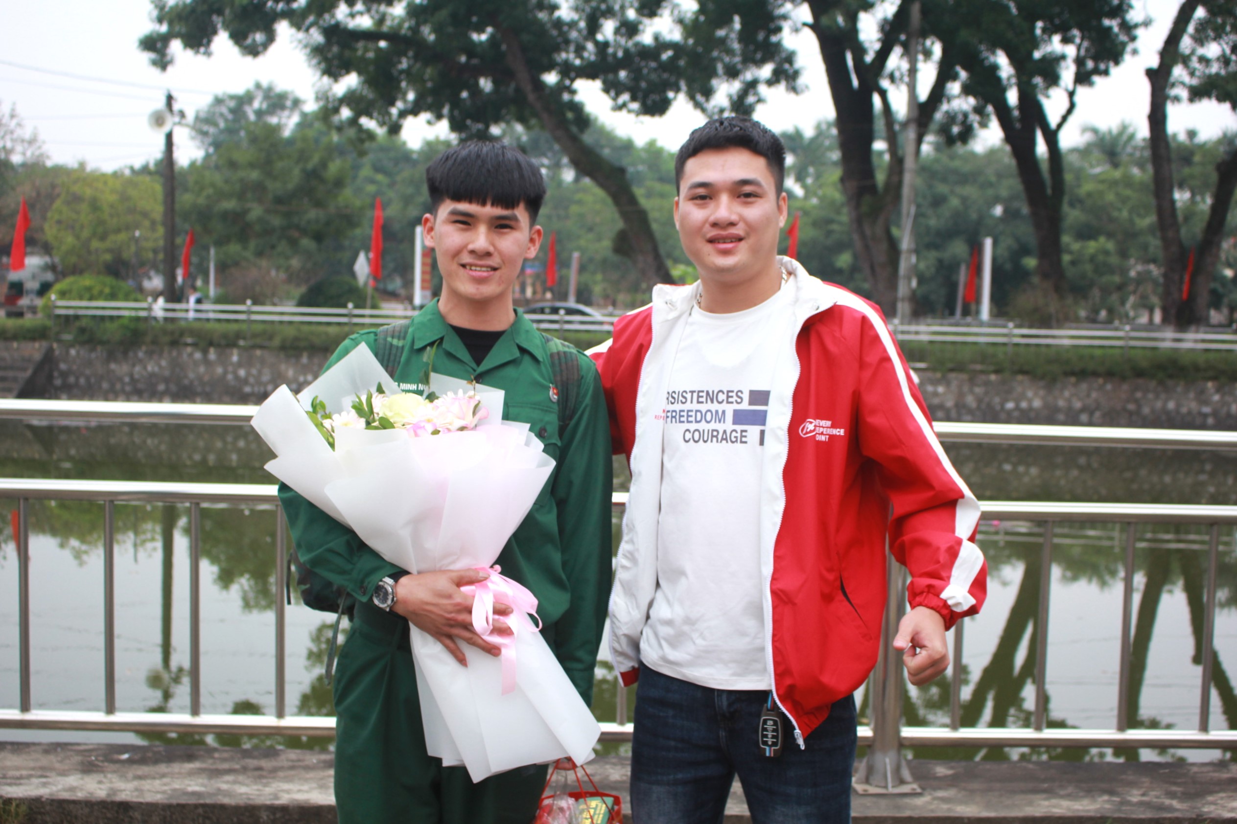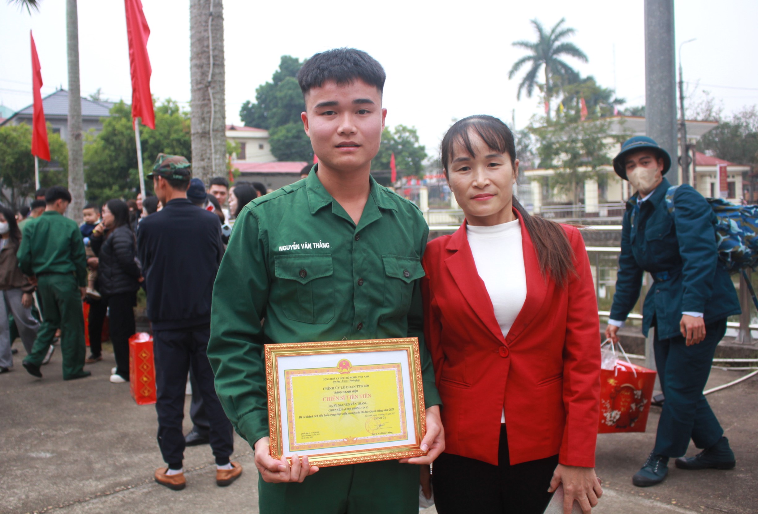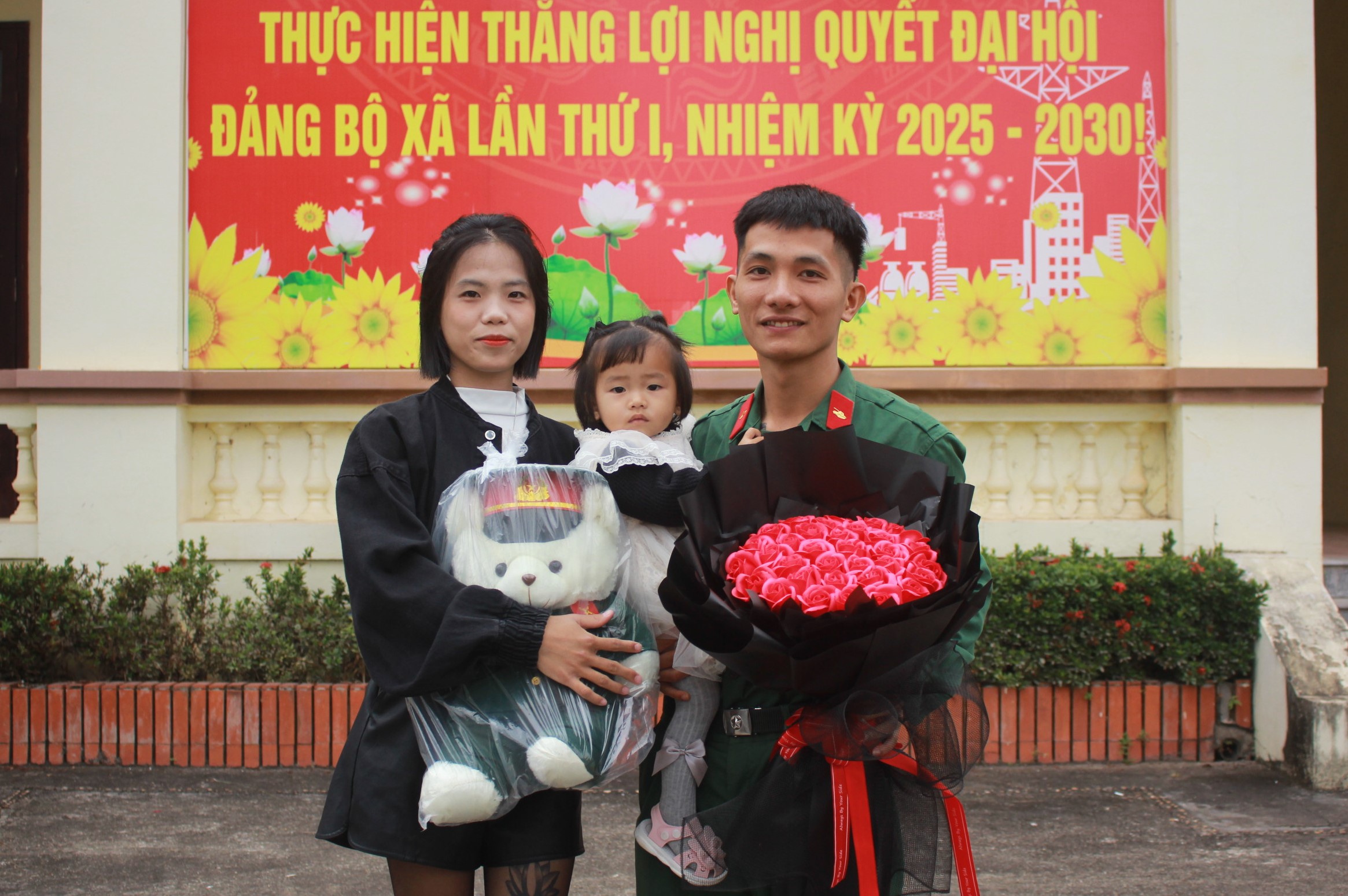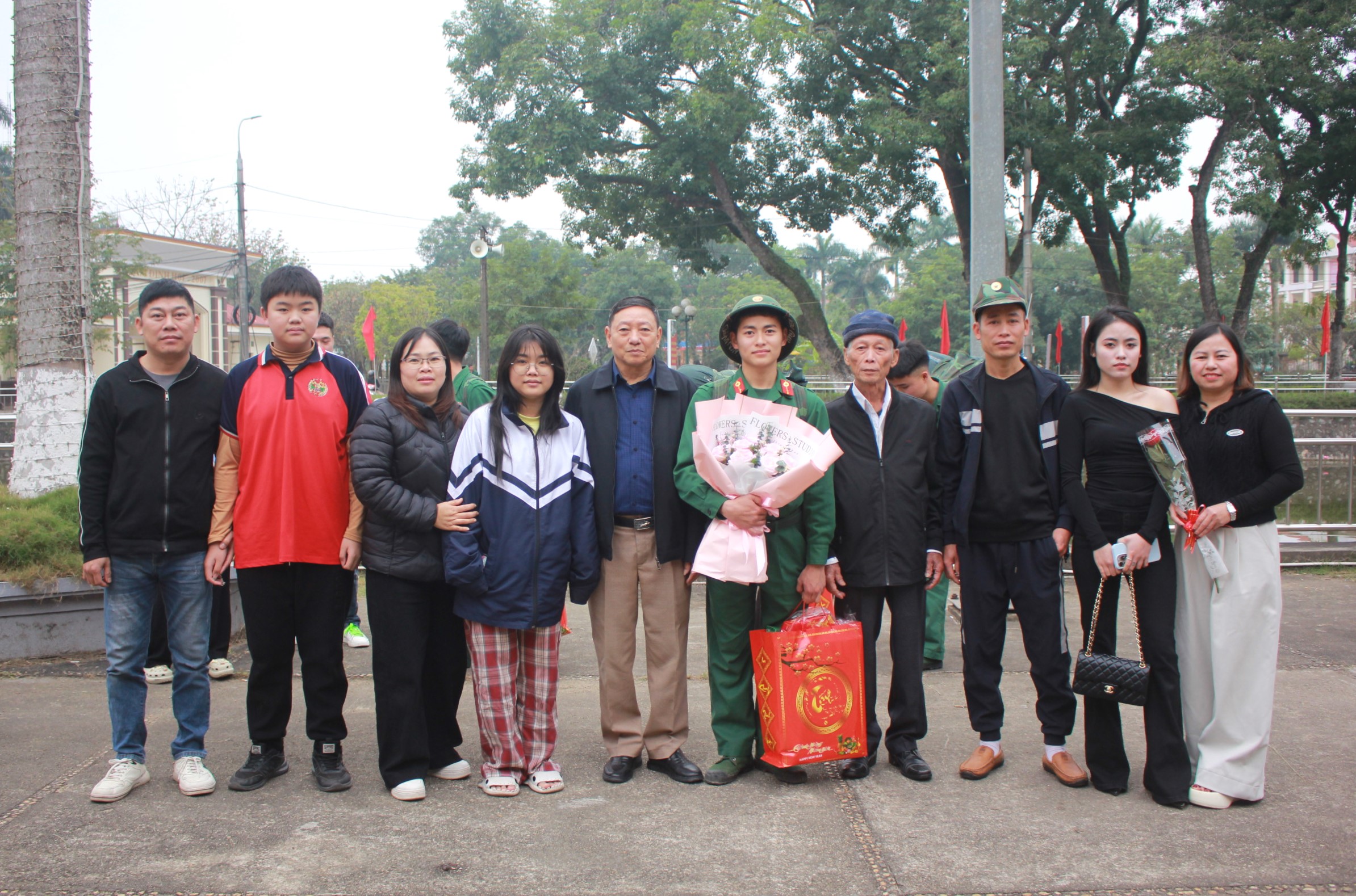 Tặng hoa chúc mừng các đồng chí hoàn thành nghĩa vụ quân sự